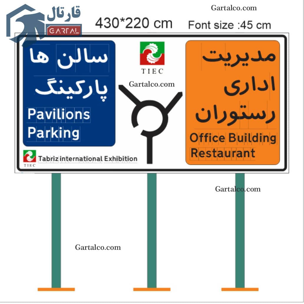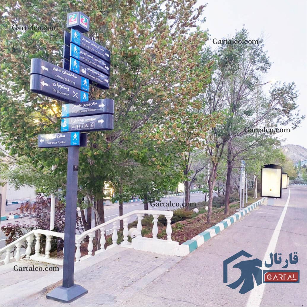 تعداد تابلو راهنمای مسیر آران: 5 عدد پایه با 30 عدد اسلات |